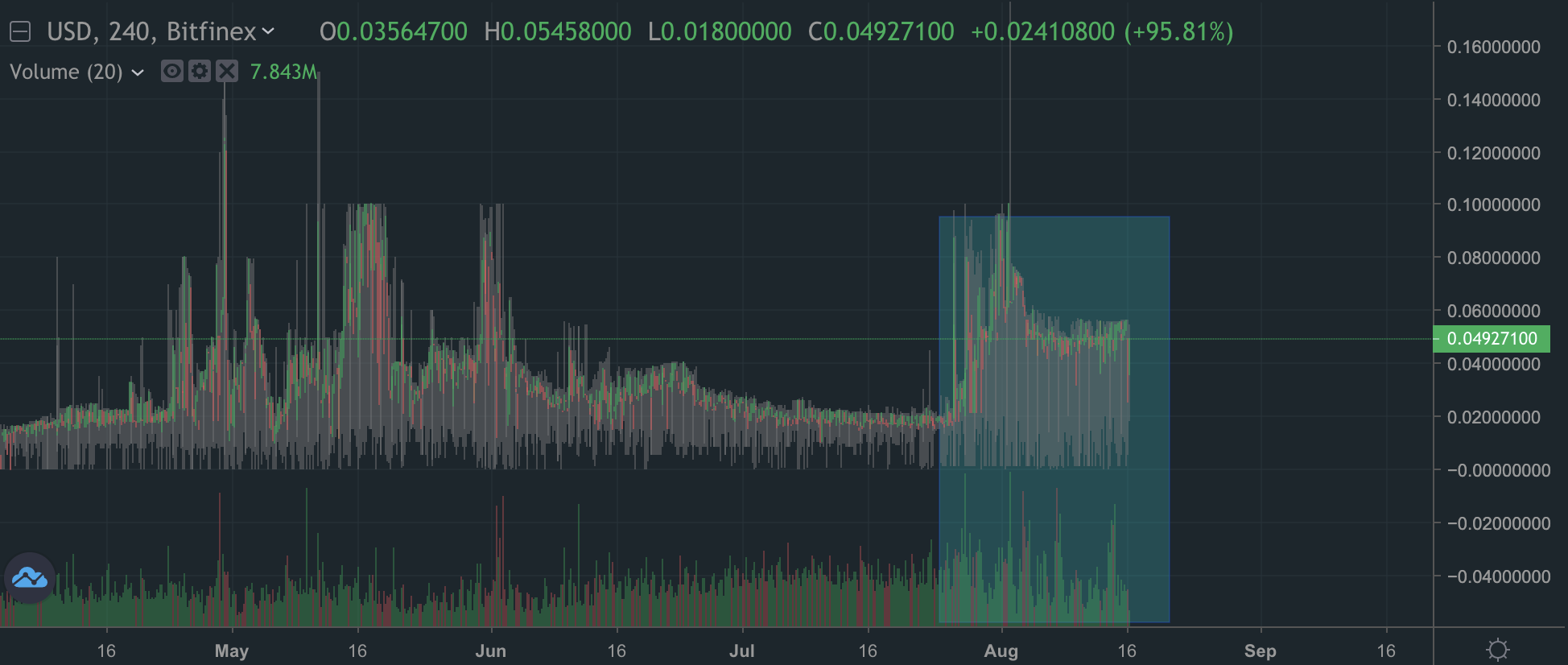 Обращаю ваше внимание на увеличение средней ставки маржинального кредитования на бирже Bitfinex. Это и рост объема торгов говорит в пользу роста ажиотажа. Сейчас можно финансировать маржинальных трейдеров по средней дневной ставке в 0,05% (1,5% в месяц). Когда на восходящем тренде растет спрос на маржинальное финансирование, это свидетельствует о притоке капитала в рынок.