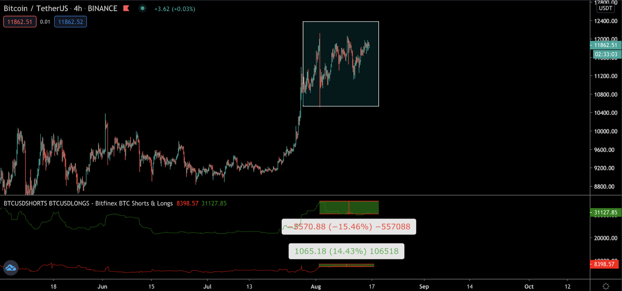 На Bitfinex наметилось сокращение длинных позиций у розничных трейдеров. После достижения отметки в $12 000 число держателей длинных позиций упало на 15,5%.