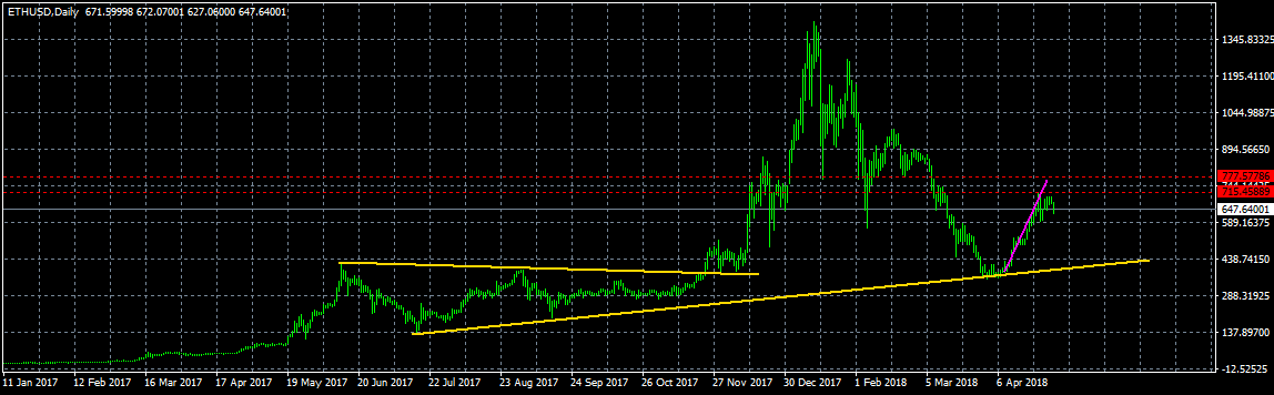 Вторая по капитализации криптовалюта на прошедшей неделе достигла значений чуть выше $700, едва не добравшись до целевой отметки в $777. Напомню, несколько недель назад было рекомендовано покупать монету чуть ниже отметки $400 и держать до выполнения первой цели $700 и чуть выше. Будем считать сигнал отработавшим.