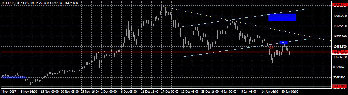 Для продолжения восходящего движения нужно пробить образовавшееся сопротивление. При пробое диапазона $9 800 – $10 000 вверх должно произойти импульсное движение в район $11 700.