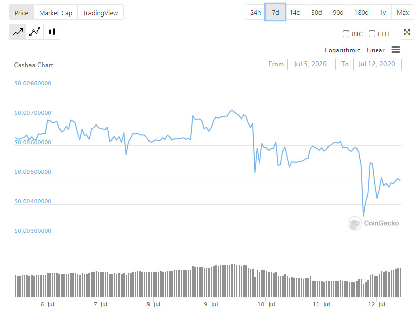 Собственный токен биржи CAS обвалился после заявления о взломе почти на 40% с $0,0059 до $0,0036 (CoinGecko). После отскока цена монеты находится в диапазоне $0,0045-$0,0047.