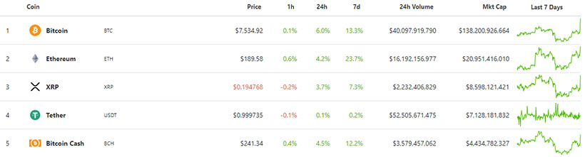 Ведущий аналитик RoboForex Дмитрий Гурковский не исключил, что в случае уверенного пробития уровня $7500 биткоин протестирует $8000. Но после этого движения можно ожидать снижения криптовалюты к отметке $5700.