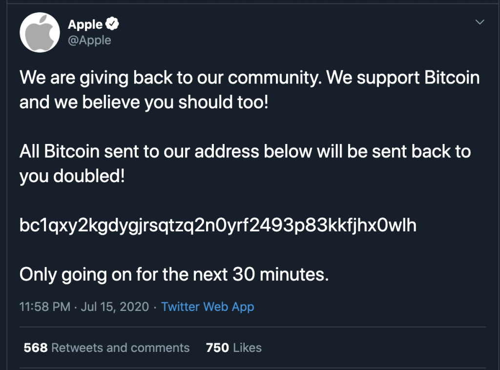 On July 15, an anonymous group actually hacked a large number of celebrity Twitter accounts and made fake Bitcoin giveaway posts. The exact tally of all affected accounts is not yet available. Among the victims were the world’s most famous entrepreneurs Musk and Bezos, key Democratic party members Biden, Obama, Bloomberg, and global companies like Apple, Uber, Binance.