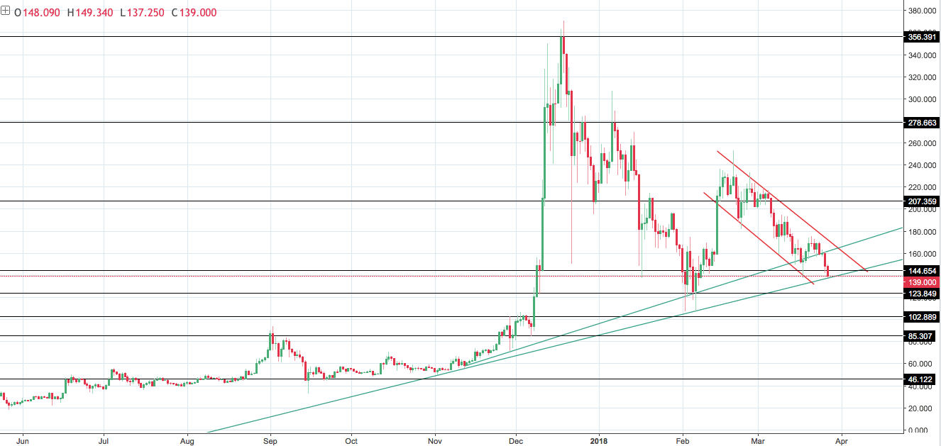 Усиливает нисходящий тренд и тот факт, что актив на своем пути пробил долгосрочную линию поддержки, которая теперь выступает в качестве сопротивления.