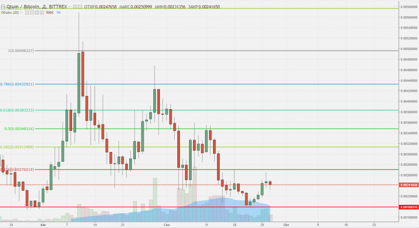 Токен сингапурского стартапа, совмещающий основные аспекты блокчейнов биткоина и Ethereum, на текущий момент также представляет очень молодой актив. Сейчас он торгуется практически у самого нижнего исторического значения/уровня 0,00198, безуспешно пытаясь пробить отметку 0,00269. О начале контртрендового движения пока судить рано: все выглядят как консолидация между двух вышеназванных котировок. Продолжаем следить за объемами торгов/интересом к активу и держим в уме нижний порог 0,00198.