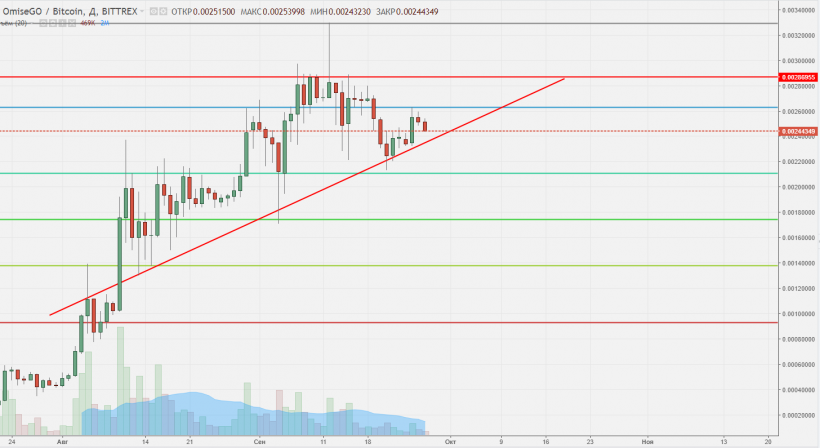 Токен на базе Ethereum — OmiseGO — показывает очень интересную динамику. Актив растет, несмотря на общее флэтовое или медвежье состояние остальных криптоактивов, на что явно стоит обратить внимание. Сейчас сформировалась неплохая точка входа на покупку, однако стоит иметь ввиду, что впереди нас ждет очень сильный уровень 0,00287, который OmiseGO пока не смог преодолеть. Но, учитывая динамику развития проекта, можно предположить, что эта планка тоже будет взята на фоне положительных новостей. По крайней мере, можно не сомневаться, что интерес к активу не уменьшится, что некоторое время назад наглядно продемонстрировали результаты пресейла.