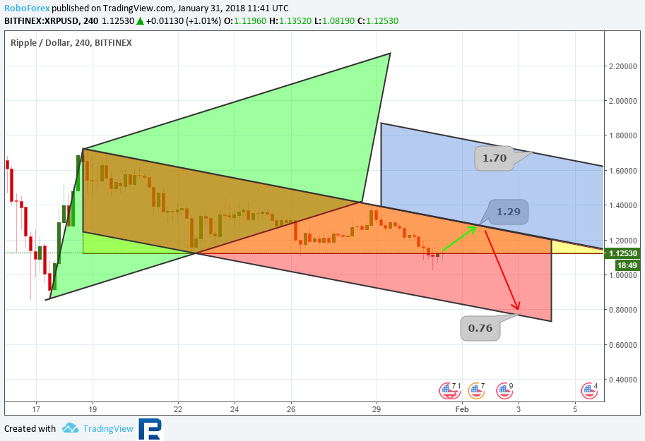 Криптовалюта Ripple не сумела развить коррекционный восходящий импульс. После продолжительного тестирования линии поддержки котировки сформировали новый канал снижения.