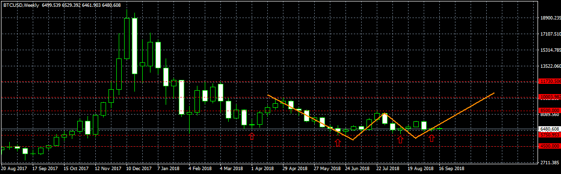 На недельном графике еще более отчетливо виден флэт и желание крупных игроков запутать толпу. Так, бычья недельная свеча сопровождается последующей явно медвежьей и наоборот. Примечательно, что эта картина наблюдается уже четвертую неделю подряд (!). Очень надеюсь, что тенденция продолжится и эта неделя не станет исключением — таким образом, после медвежьей свечи мы увидим бычью.