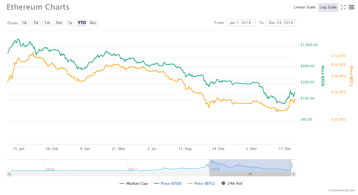 13 августа средневзвешенный курс ETH обновил 9-месячный минимум, опустившись ниже психологической отметки в $300, а спустя несколько дней еще один «удар ниже пояса» нанес CEO криптовалютной биржи BitMEX Артур Хэйес – он не только назвал Ethereum «шиткоином», но и предсказал падение цены монеты ниже $100. 7 декабря его прогноз сбылся.