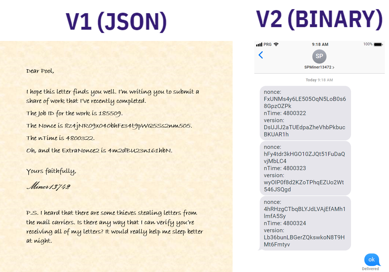 Ян Чапек: Самой большой стимул для майнеров – это более эффективное использования пропускной способности. Это дает возможность вести майнинг даже при не самом лучшем интернет-соединении. Кроме того, у пулов появляется возможность заранее распределять будущие шаблоны блоков среди майнеров (отдельно от сообщения ‘SetNewPrevHash’), что устраняет нахождение пустых блоков. Наконец, отказ от кода на базе JSON (человекочитаемого) в пользу бинарного кода (считываемого машиной) существенно снижает размер передаваемой информации.