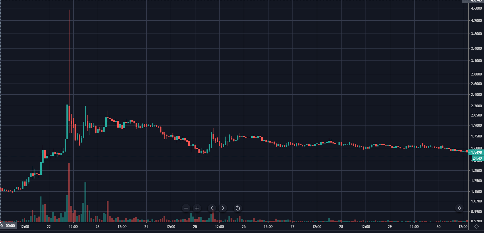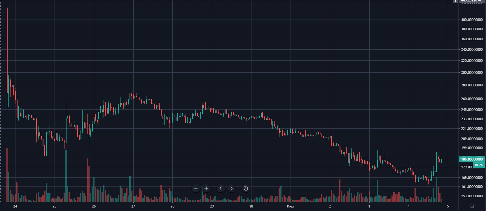 Накануне листинга монета торговалась по $2,60, однако с началом торгов на Coinbase актив взлетел до отметки $5,10. Закрытие свечи 29 июня произошло на уровне $3,80.