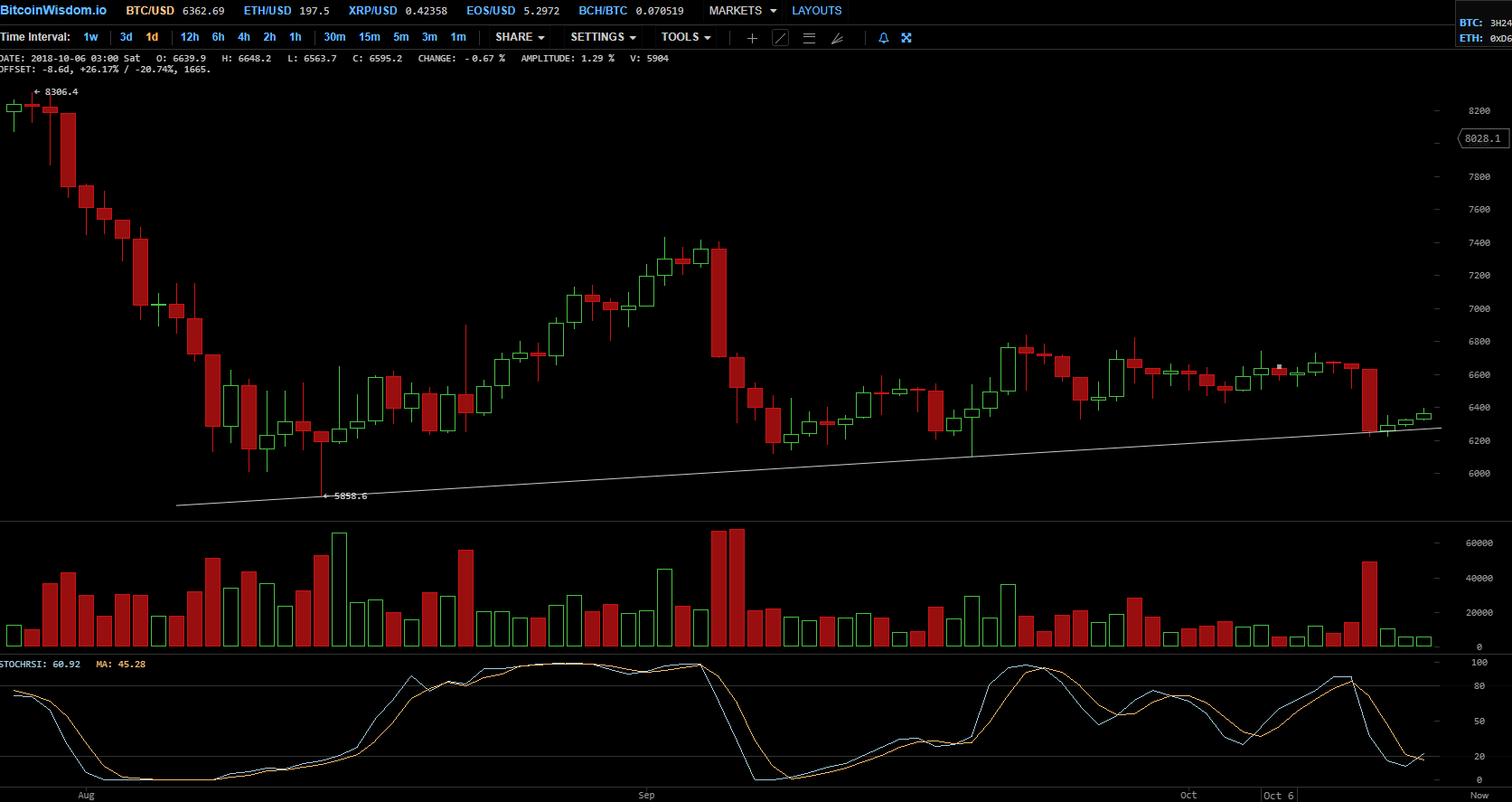 Таким образом, «обвала», по сути, не было — долгосрочная поддержка устояла и цена не обрушилась ниже психологического уровня $6000.