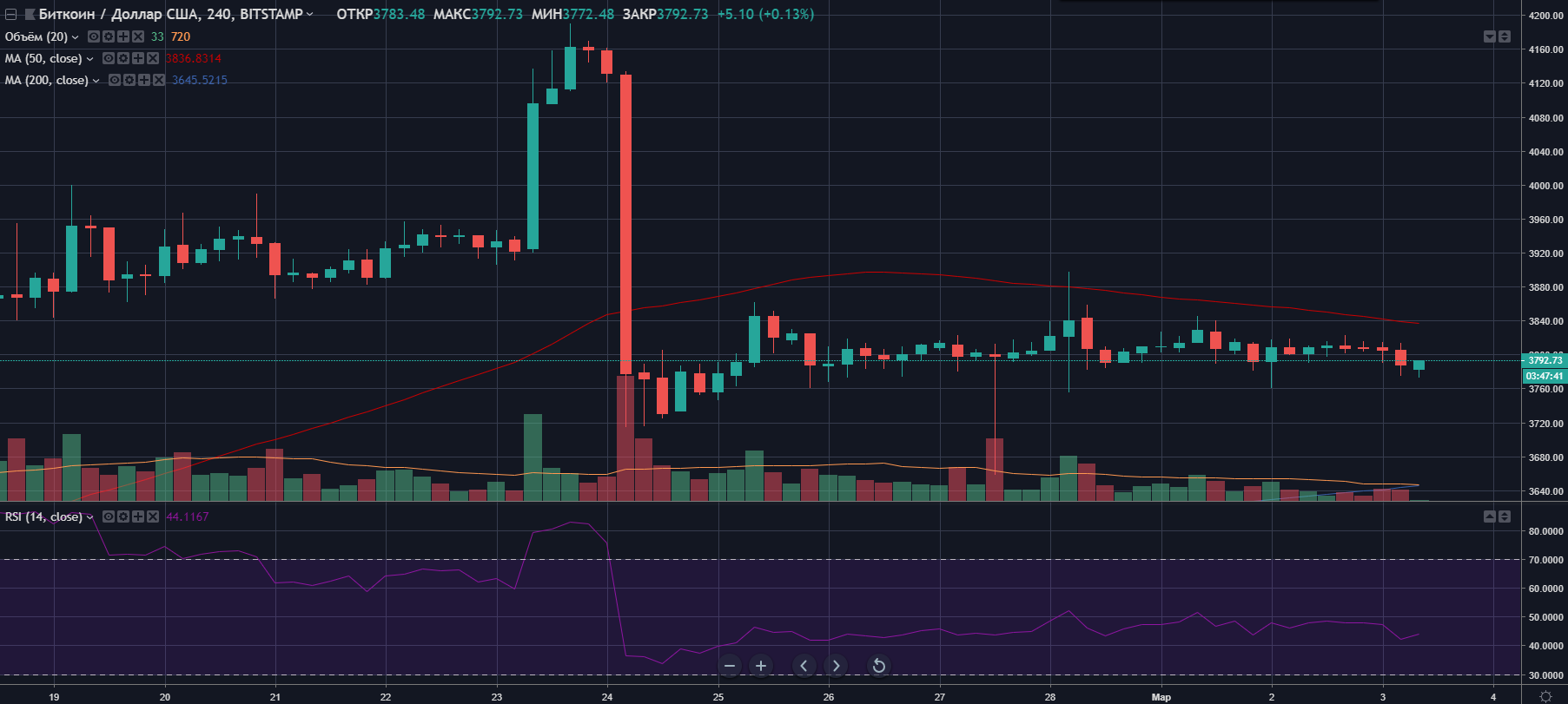 Несмотря на высокую вероятность продолжения коррекции до $3400, есть некоторые технические предпосылки для восходящего движения. В частности, аналитик CoinDesk Омкар Годбоул уверен, что вопреки статистике, этот март станет удачным для цены биткоина. Но чтобы это случилось, быкам для начала нужно протолкнуть цену выше сопротивления на отметке $4190.