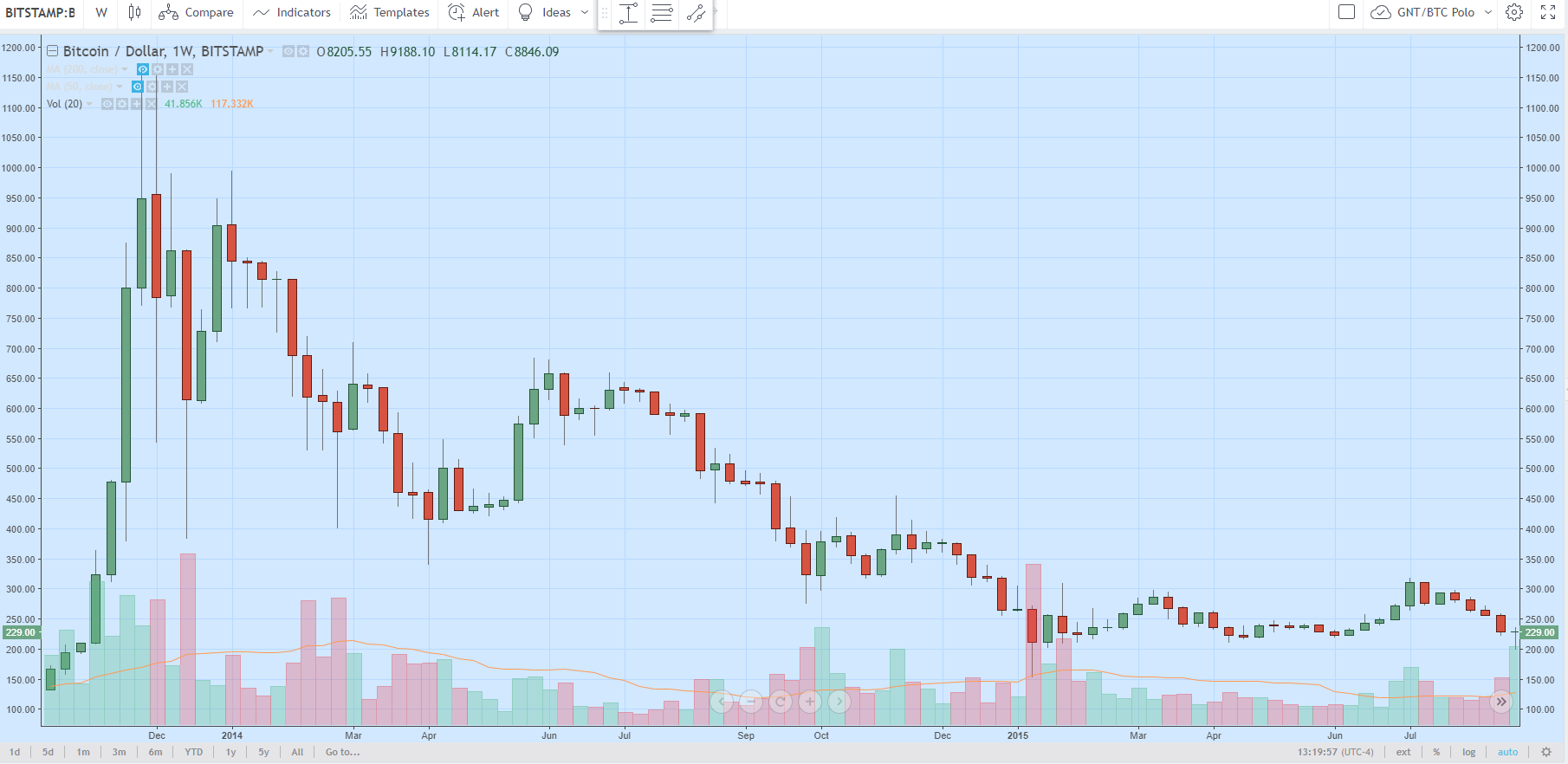 Бывалые криптоэнтузасты помнят что в этот период, действительно, произошло сдутие пузыря. Так, после достижения в конце 2013 года отметок выше $1000, цена биткоина впала в затяжную рецессию, длившуюся почти два года.