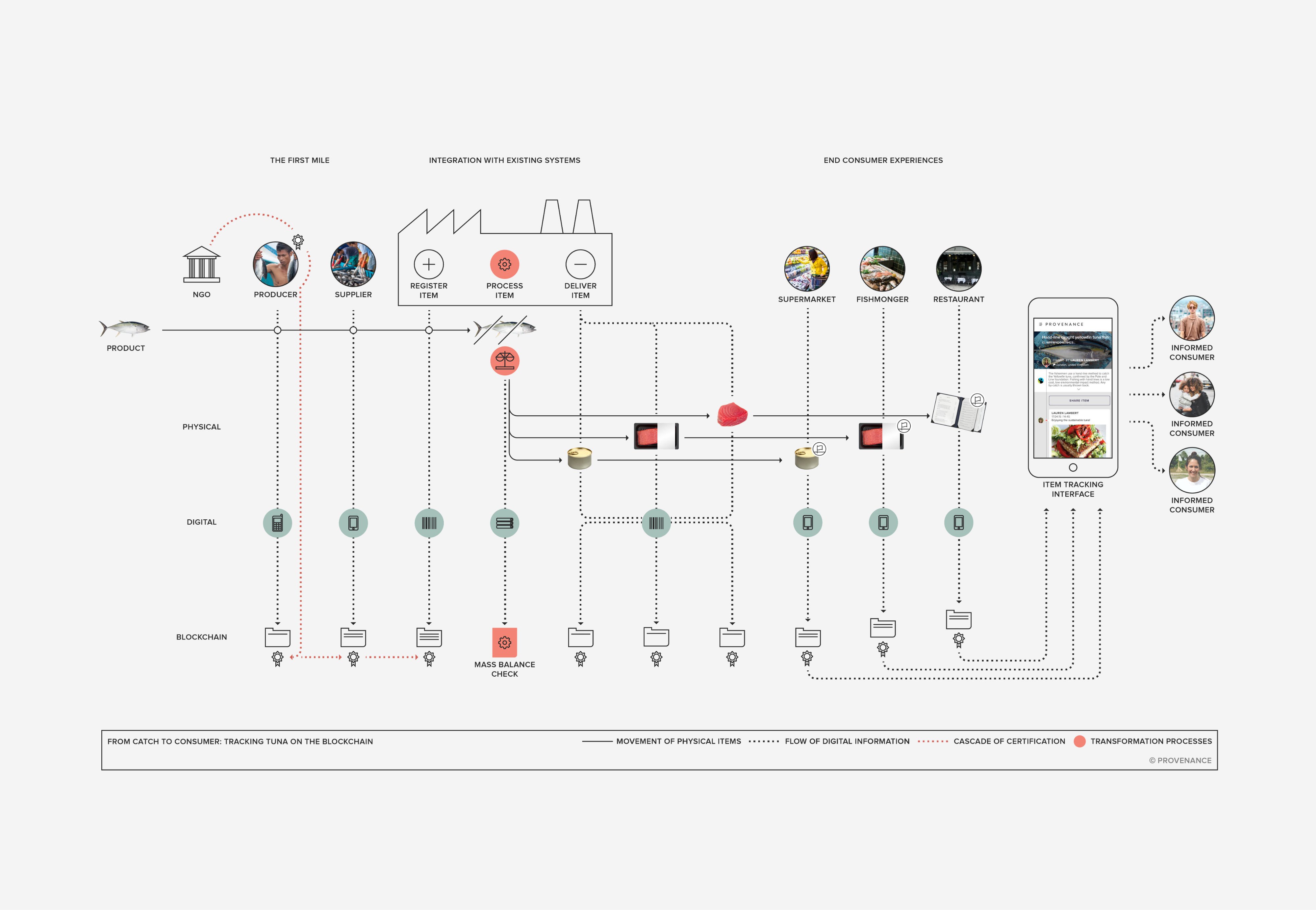 По статистике, до 30% всей рыбы, потребляемой в мире, вылавливается либо незаконно, либо с применением запрещенных методов. В некоторых странах, таких как Украина, Мексика и Бразилия доля незаконного улова составляет 90%. Оригинальный метод решения этой проблемы предлагает крупный британский потребительский кооператив The Co-op Food. Так, он запустил решение, основанное на блокчейне, которое позволяет проследить весь путь поставляемых в магазины и рестораны морепродуктов, начиная с момента вылова и заканчивая корзиной потребителя.
