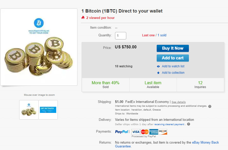 1. Вы выставляете биткоин-лот на ebay.
