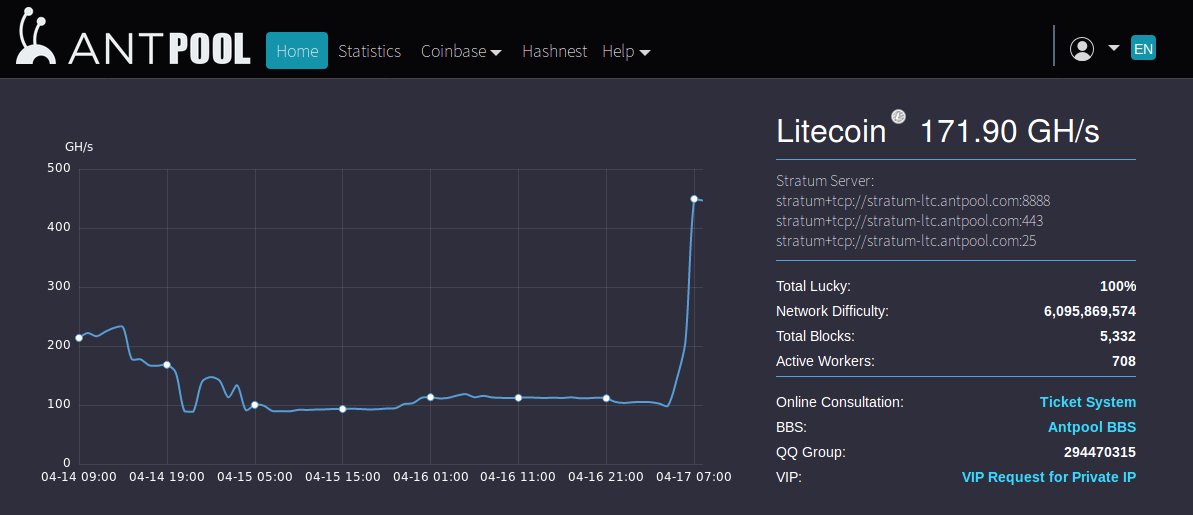 Более того, на каком-то этапе хэшрейт китайского пула в сети Litecoin резко пошел вверх и достиг 20%. В зависимости от развития событий и с учетом мощностей нескольких других операторов (в первую очередь это относится к LTC1BTC) этого может хватить для блокировки усилий остальных майнеров.