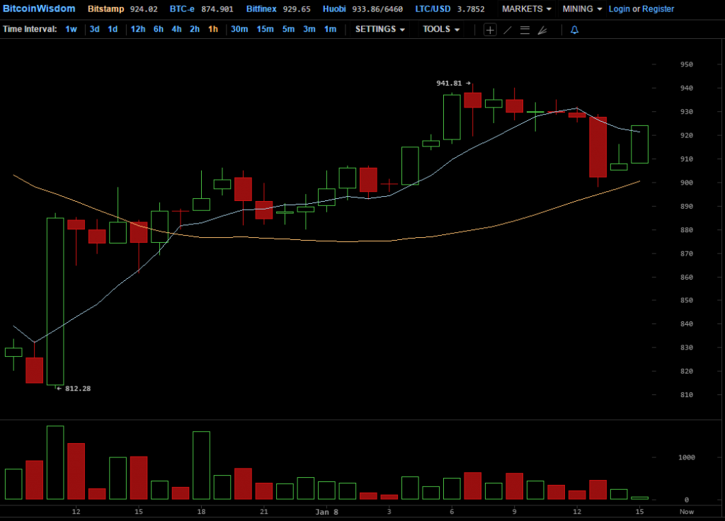 За последние сутки с небольшим, когда все эти события переваривались сообществом, цена несколько выровнялась и даже вернулась на отметки выше $900. Также совершенно определенно можно говорить и о возвращении старой доброй волатильности, о которой в последнее время рынок стал несколько забывать. Подтверждением тому стала и воскресная картина: если в ночь на 8 декабря биткоин вырос в цене, поднявшись до $940, в последние несколько часов курс снова устремился вниз и на момент публикации (13:20 UTC) находится в районе $924.