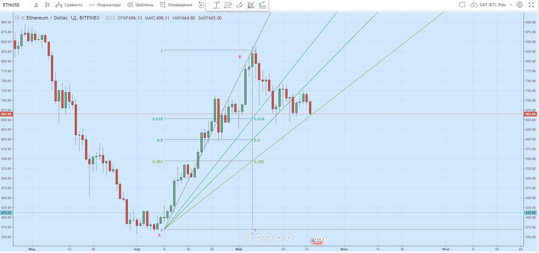 Незаменимые помощники криптотрейдера: уровни, веер и расширение Фибоначчи