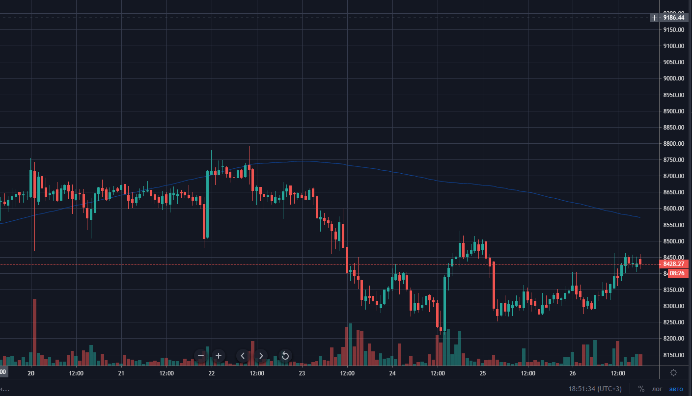 В течение недели цена биткоина пребывала преимущественно в боковом движении — резких скачков не наблюдалось, как и ретеста недавно достигнутой отметки $9000.