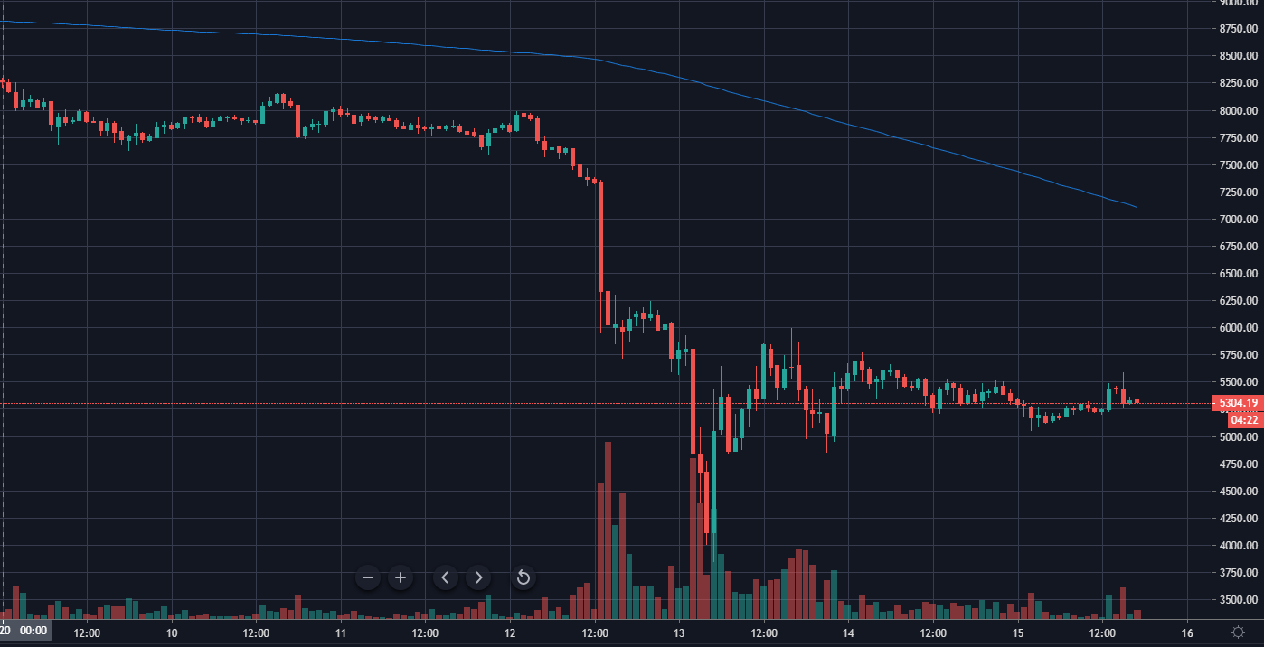В пятницу, 13 марта, ситуация усугубилась еще больше — биткоин в какой-то момент опустился до отметки $3800, потеряв более 50% стоимости всего за сутки. Падение оказалось третьим по глубине за всю историю цифрового золота: