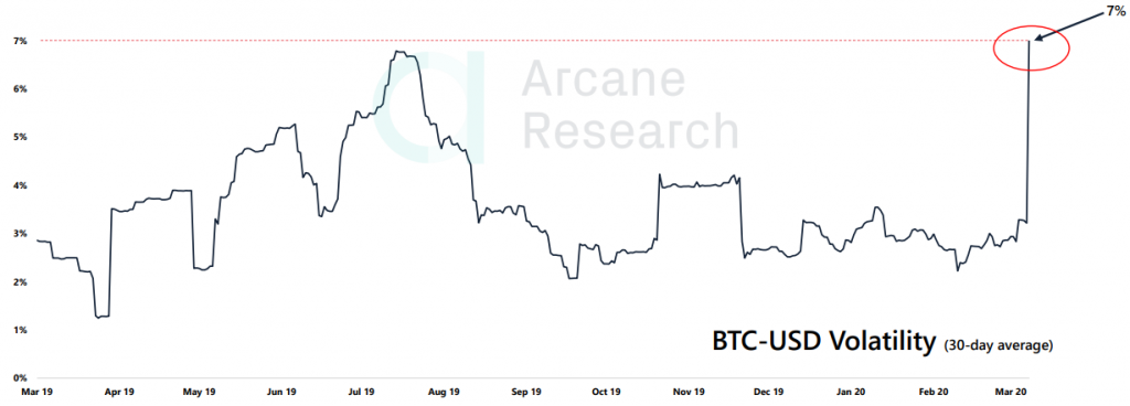 Показатель волатильности BTC взлетел до отметки 7%, которая до этого в последний раз наблюдалась еще в 2014 году: