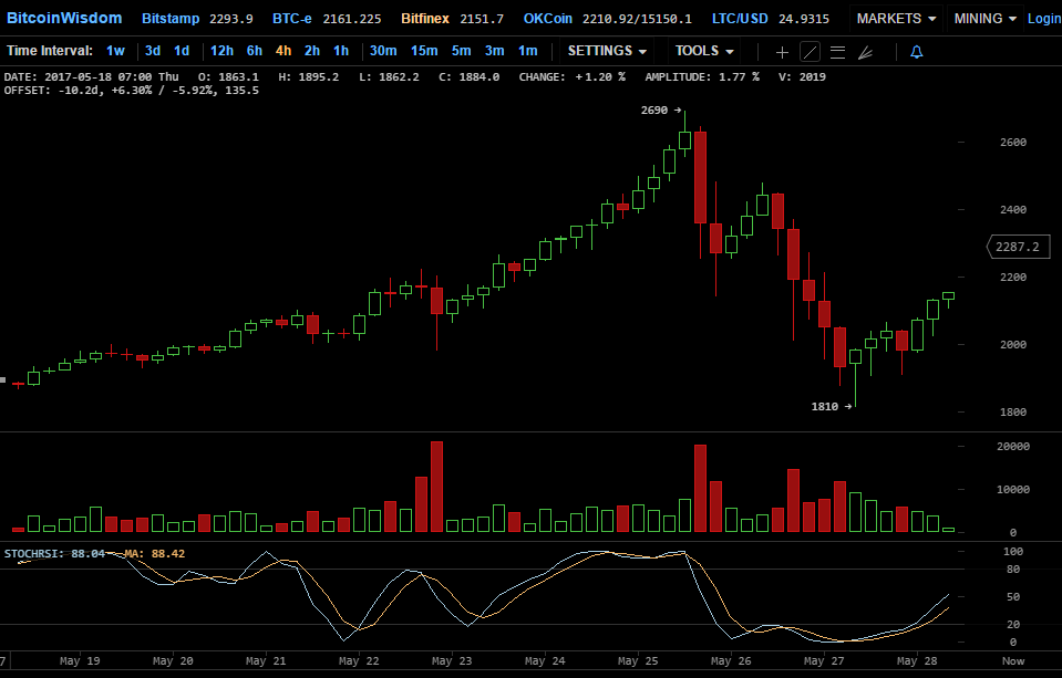 Невзирая на незначительную коррекцию в начале недели, первая цифровая валюта продолжила свое уверенное восстановление. Как видно из дневного графика популярной биржи Bitfinex, биткоин вновь упорно стремится к былым высотам и уже протестировал отметку в $4500: