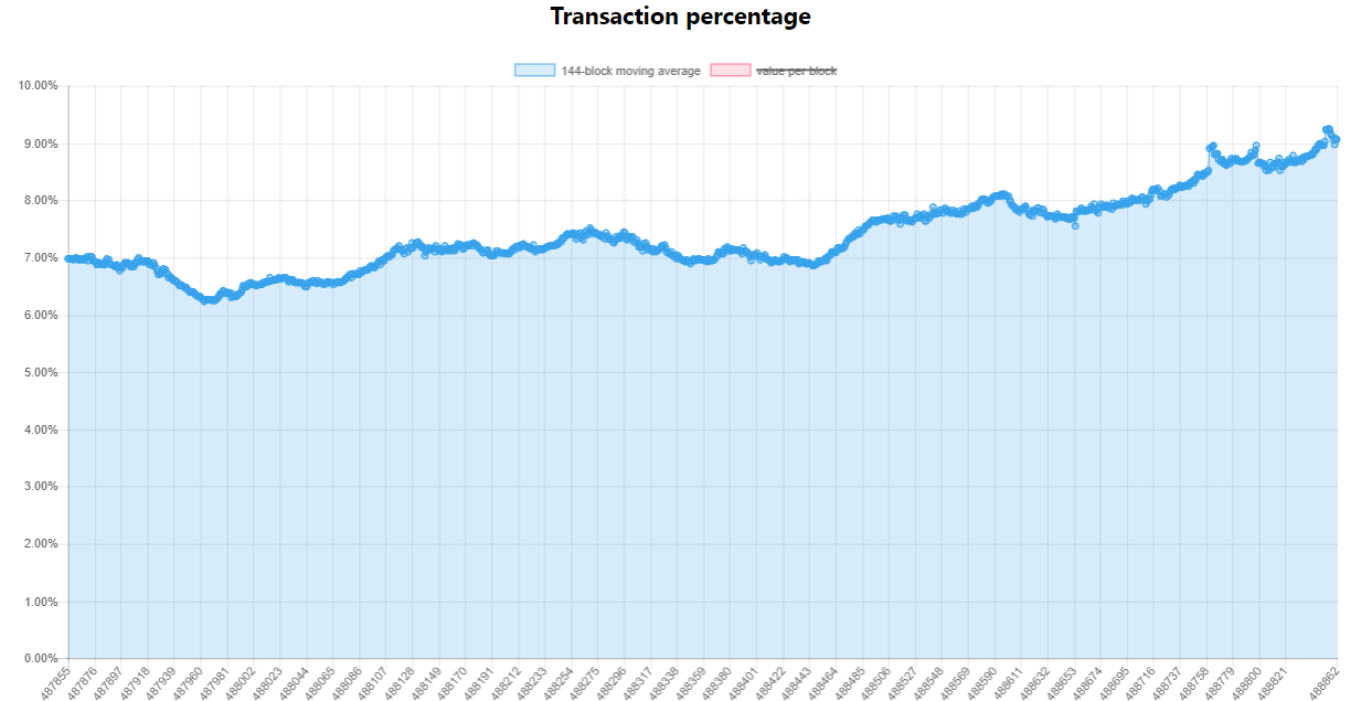 К настоящему времени доля SegWit-транзакций в сети биткоина превысила отметку в 9%: