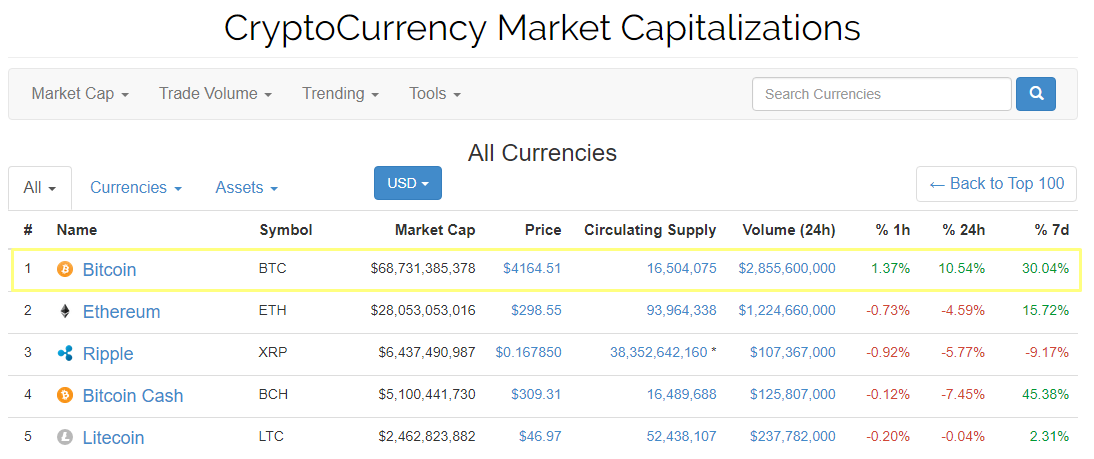 В целом же, за последнюю неделю цифровое золото стало дороже примерно на 30%, а капитализация биткоина приближается к отметке в $70 млрд. Совокупная стоимость всех представленных на рынке криптовалют составляет 137 млрд, что сопоставимо с капитализацией компании Mastercard.