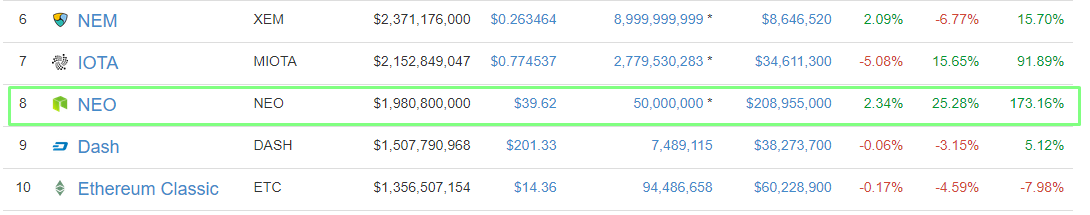 Лишь за последнюю неделю цена токенов NEO выросла более чем на 170%. Капитализация криптовалюты приближается к отметке в $2 млрд.