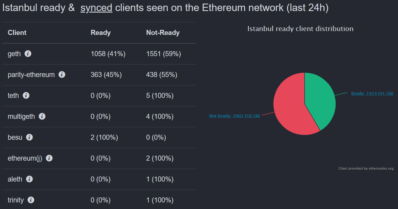 Так, по данным Ethernodes, по состоянию начало четверга, 5 декабря, к хардфорку были готовы 41% нод Geth и 45% Parity — двух наиболее популярных клиентов сети. В потенциале это может вылиться в появление еще одного блокчейна, который не будет подчиняться новым правилам.