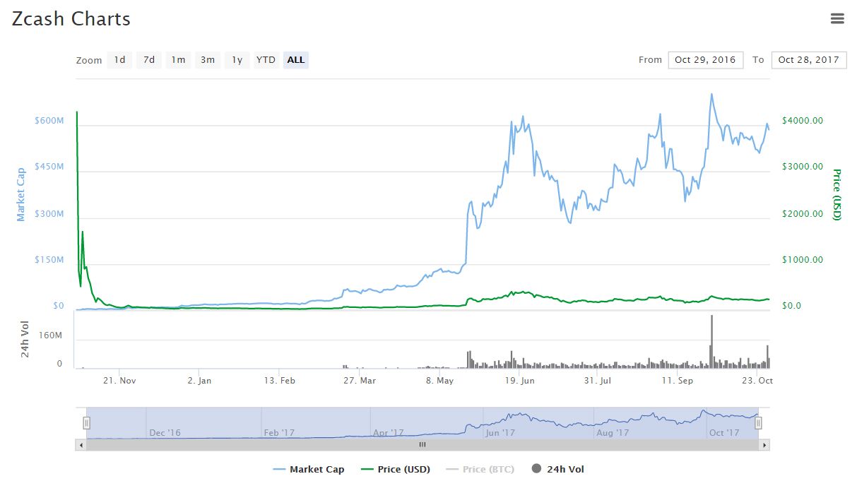 Как многие помнят, запуск Zcash прошел на фоне беспрецедентной волатильности курсу криптовалюты, когда ее курс в определенные моменты достигал почти $6000.