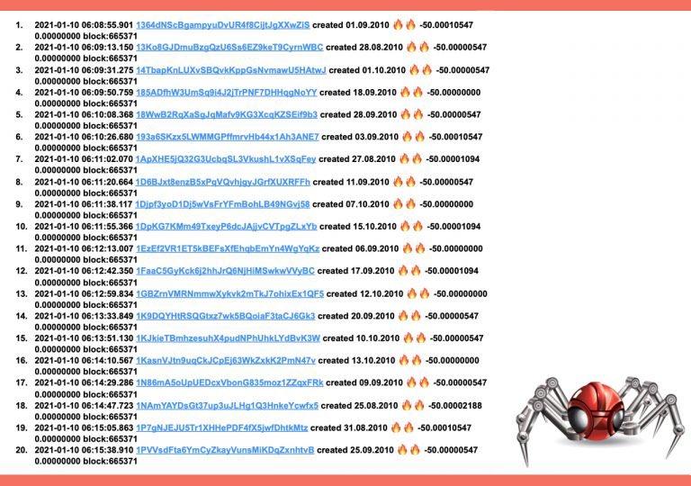 В мае пришли в движение 50 биткоинов, полученные в качестве награды за блок 9 февраля 2009 года. Сеть первой криптовалюты работала на тот момент всего один месяц. Одним из майнеров в то время был создатель биткоина Сатоши Накамото. Многие пользователи предположили, что он мог быть владельцем монет, но анализ паттернов Патоши гипотезу не подтвердил.