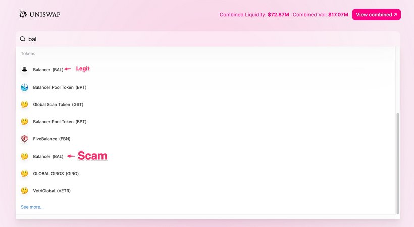 Be aware of scam #DeFi tokens on Uniswap