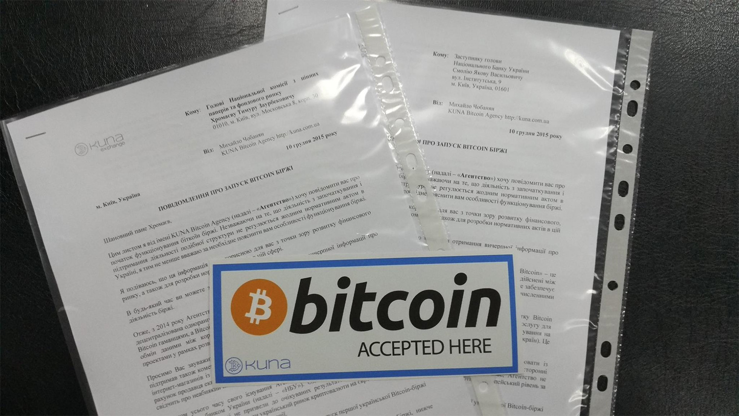 Биткоин-агентство KUNA направило в Национальный банк Украины и главе комиссии по ценным бумагам и фондовому рынку Украины Тимуру Хромарёву уведомления о предстоящем запуске первой в истории Украины биткоин-биржи.