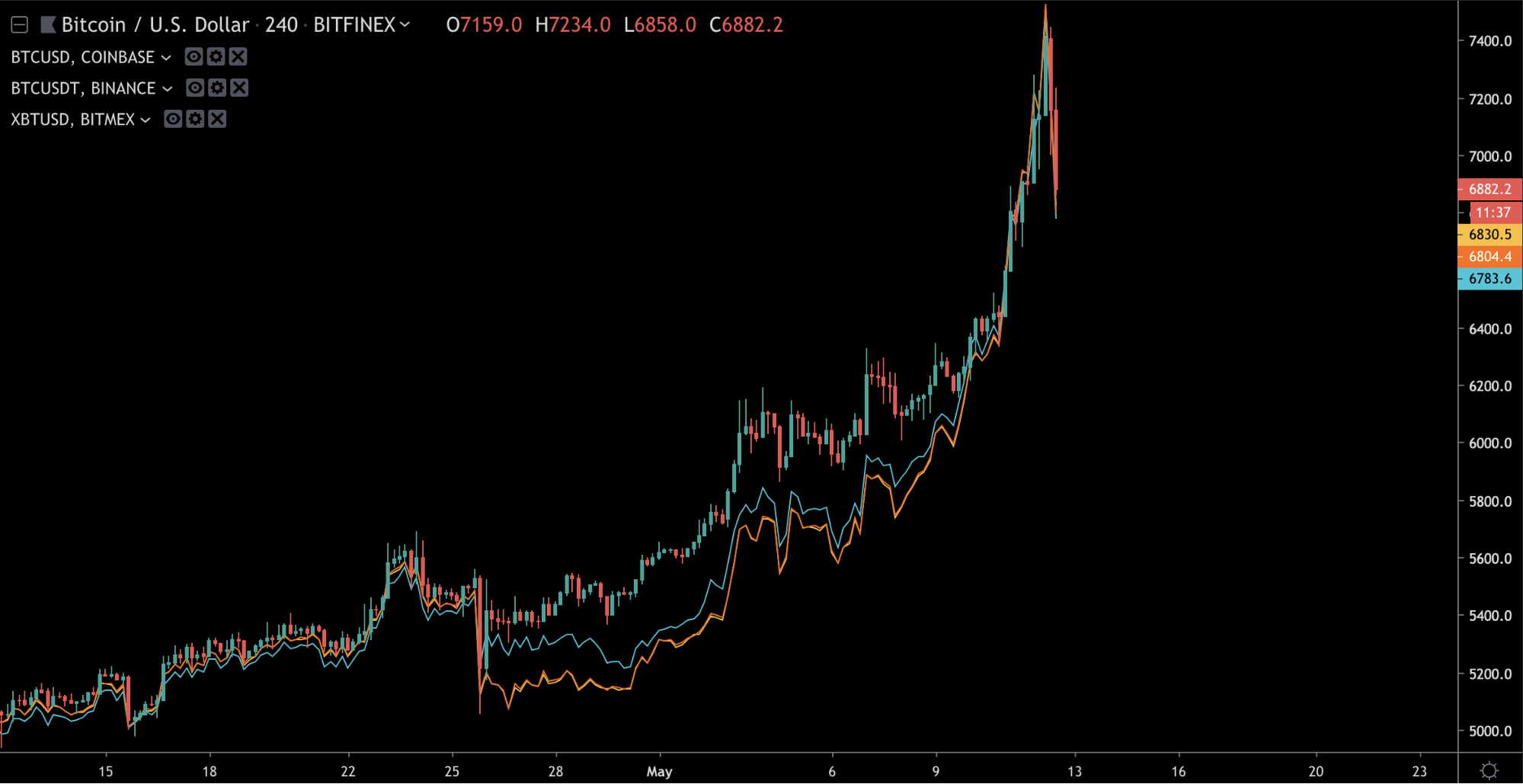 Также стоит отметить, что ценовой спред между биржами значительно сократился. Это признак здорового рынка: