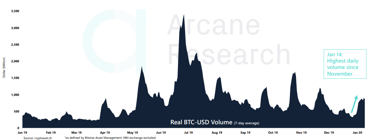 Объемы торгов биткоином достигли значений ноября; на входящих в рейтинг Bitwise биржах 14 января оборот достиг $1,7 млрд.