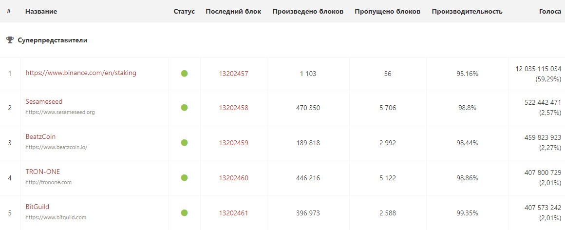 Криптовалютная биржа Binance заморозила более 12 млрд токенами TRX и, проголосовав ими, вышла на первое место в списке 27 суперпредставителей (производителей блоков) сети Tron. Об этом сообщает UToday.