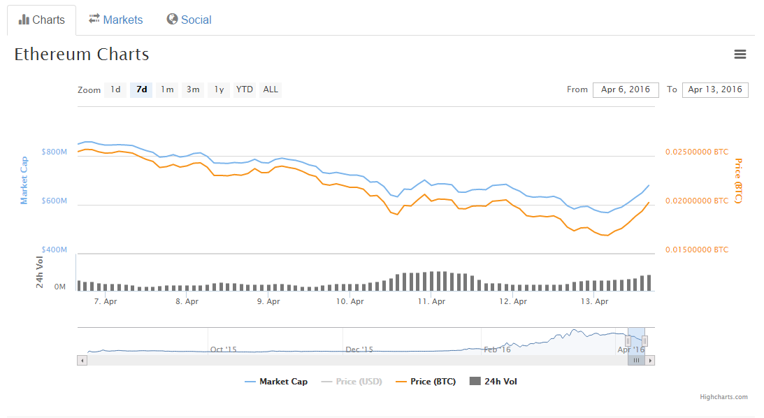 Также будет любопытно проследить за поведением криптовалюты в долгосрочной перспективе. В последние несколько дней наблюдается существенное снижение её стоимости (0.02025 на этот час), в результате чего многие трейдеры избавлялись от токенов Ether. Это, в свою очередь, привело и к снижению рыночной капитализации, тем не менее, с цифрой $679 675 на момент публикации, по этому показателю она по-прежнему занимает второе место в списке криптовалют, уступая лишь биткоину.