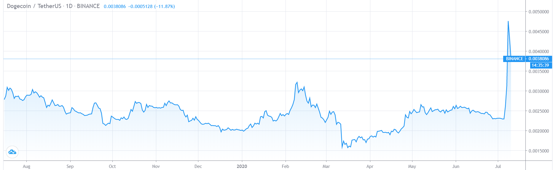 График DOGE/USDT биржи Binance от TradingView