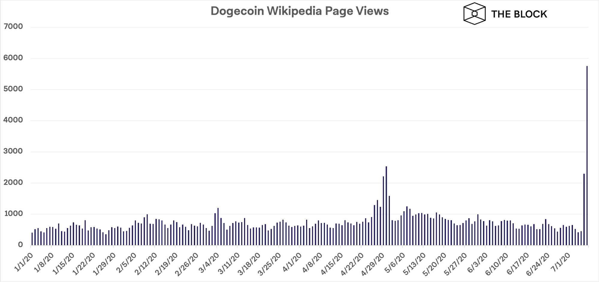 Популярность посвященной Dogecoin странице в Википедии выросла в 8 раз, с 730 ежедневных просмотров до 5700.