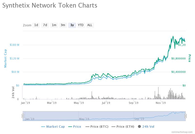 Список самых эффективных инвестиций возглавил сетевой токен Synthetix (SNX) — цена монеты увеличилась с 0,037 в январе до $1,27 на данный момент. Рост превысил 3300%.