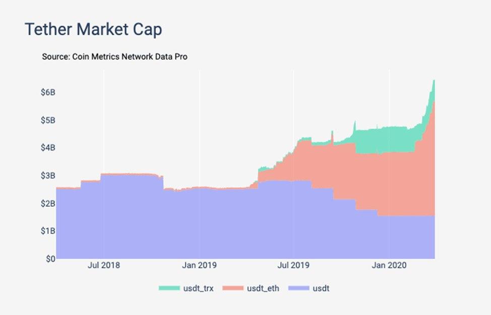 Так, капитализация основного стейблкоина USDT достигла $6,4 млрд. За неполный месяц предложение монет на блокчейне Ethereum возросло на $1,4 млрд, в сети Tron — на $165 млн, тогда как объем эмиссии Tether в Omni остался стабильным.