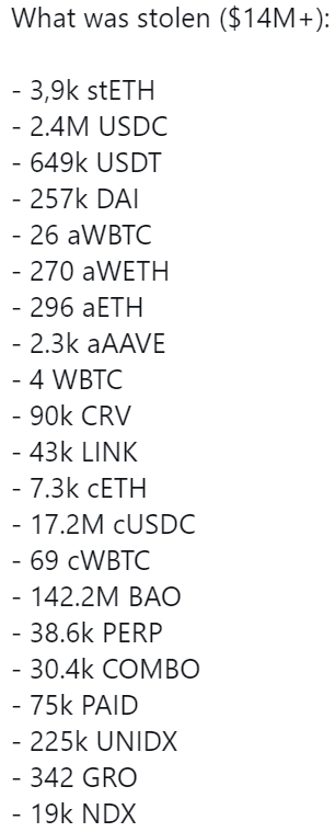 По словам исследователя The Block Игоря Игамбердиева, хакер использовал поддельный контракт, который заставил Furucombo решить, что Aave v2 имеет новую имплементацию. Это дало возможность при взаимодействии с этим DeFi-протоколом переводить одобренные токены на произвольный кошелек.