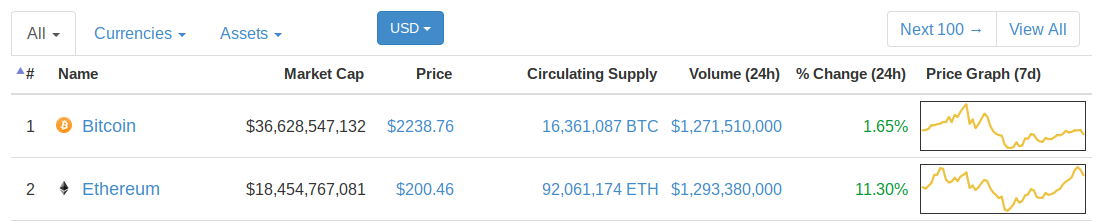 Средневзвешенный курс биткоина тем временем на момент публикации составляет $2256, хотя ранее в течение дня первая криптовалюты поднималась в цене до $2300.