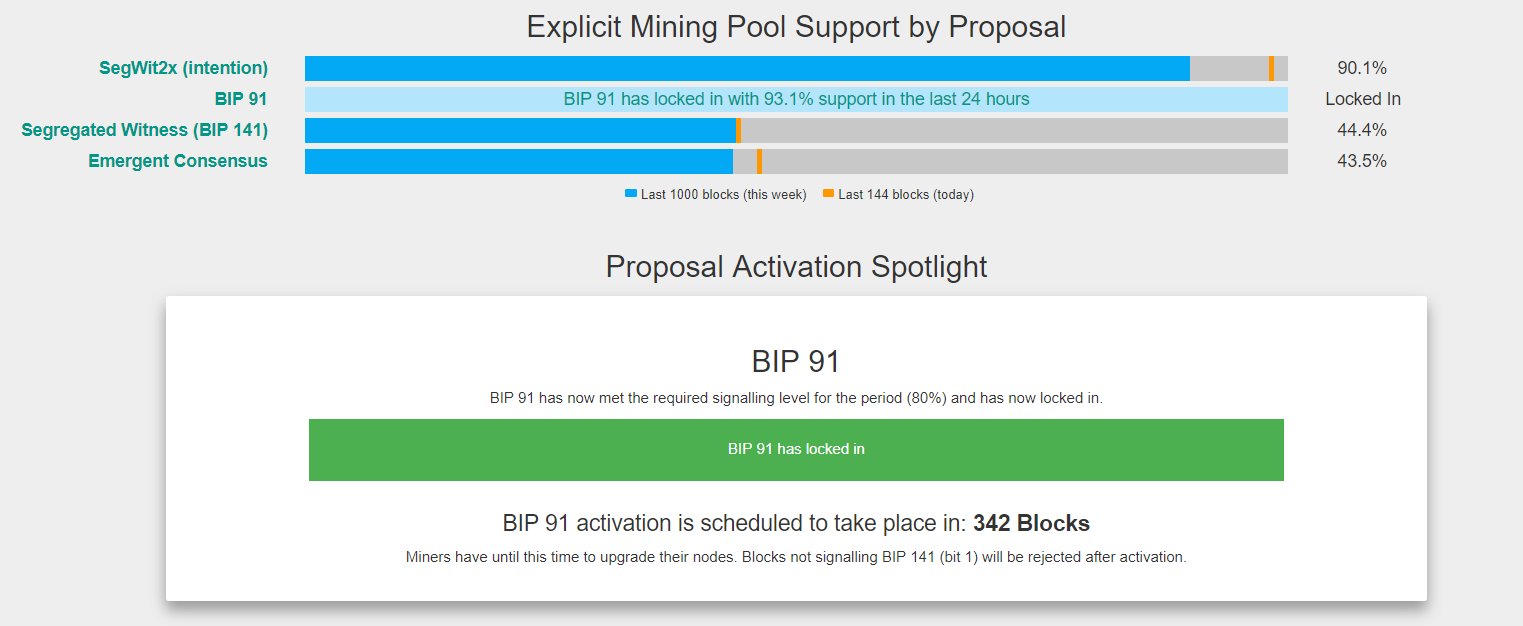 Фиксация BIP 91 в сети биткоина состоялась, но активация Segregated Witness по-прежнему под вопросом