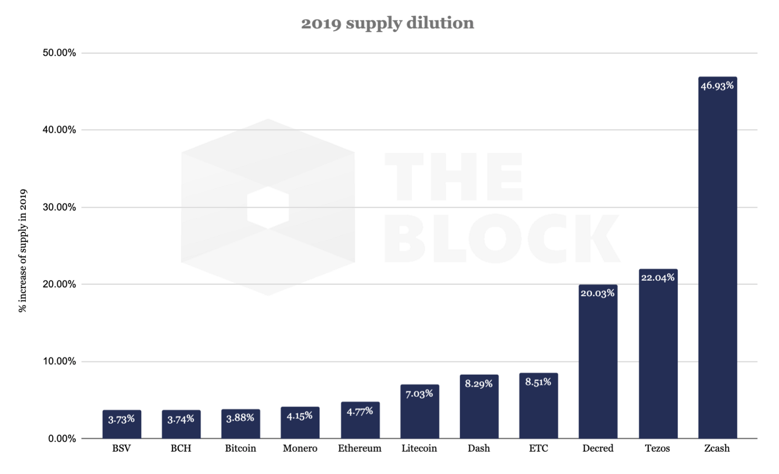 Аналитик издания The Block Ларри Чермак пришел к выводу, что у первой криптовалюты и популярных ее форков — BCH и BSV — самые низкие показатели годовой инфляции среди наиболее капитализированных активов.