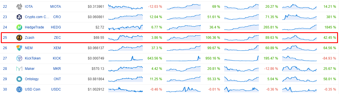 Некогда довольно популярный актив сейчас на 25-й строчке по рыночной капитализации, с начала прошлого года Zcash вырос лишь на 42%. За это время курс биткоина поднялся на 174%, чуть более инфляционный Ethereum — на 91,55%, а Bitcoin Cash и Bitcoin SV выросли на 258% и 437% соответственно.