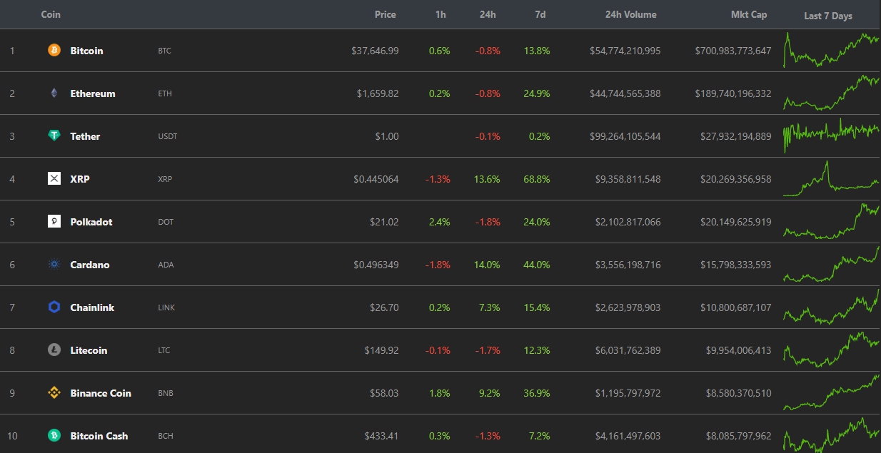 Напомним, в 2020 году криптовалюты из ТОП-30 выросли в среднем на 308%, согласно отчету CoinGecko.