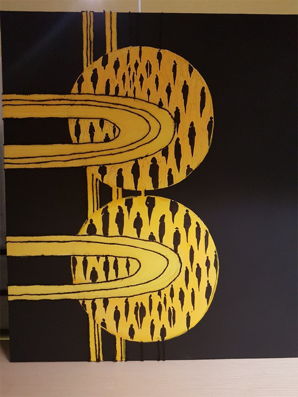 Первое место и 50 тысяч гривен в биткоинах разделили между собой Анна Битаева с картиной «Начало» и Astian Rey с инсталляцией «Гармония прогресса».